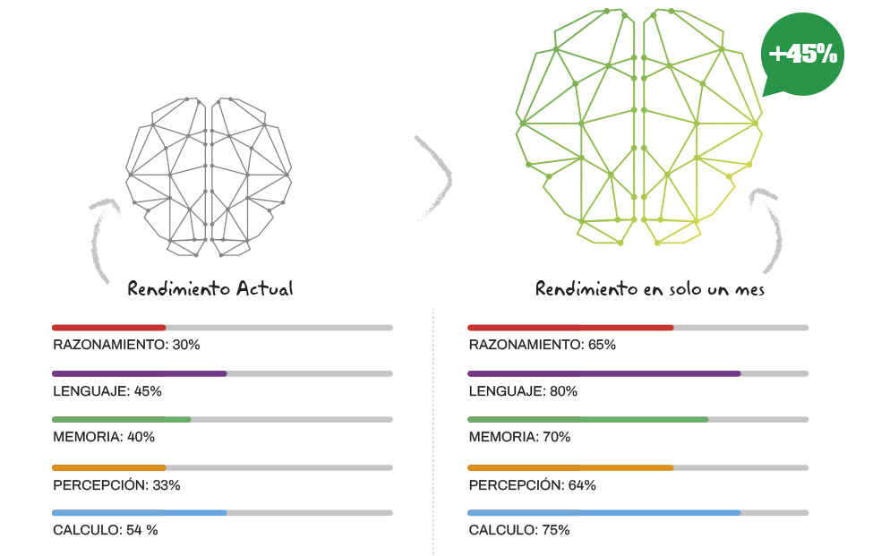 Los usuarios que entrenan a diario mejoran su cerebro en una media del 45% en un solo mes.